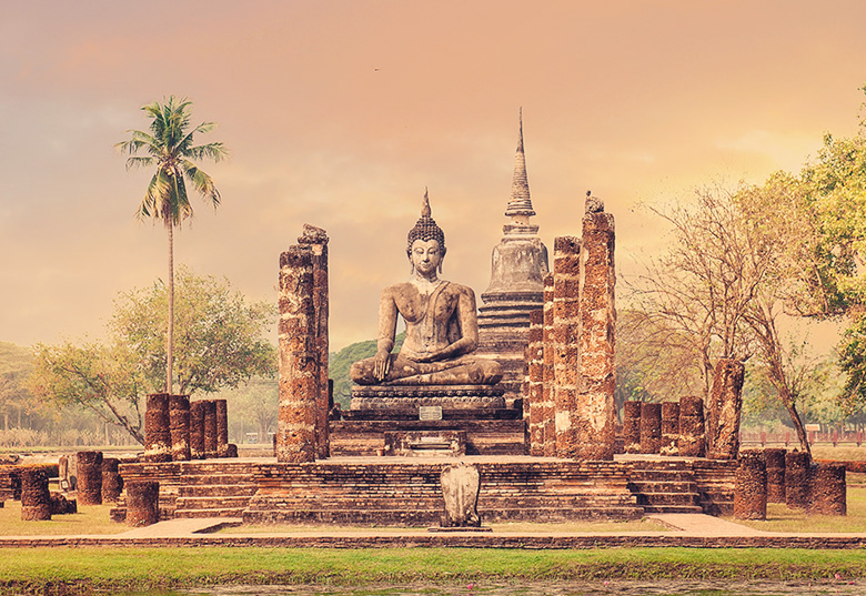 To the north, Sukhothai, the first Thai Kingdom, preserves serene Buddha statues and graceful stupas that mark the dawn of traditional art and national identity.
