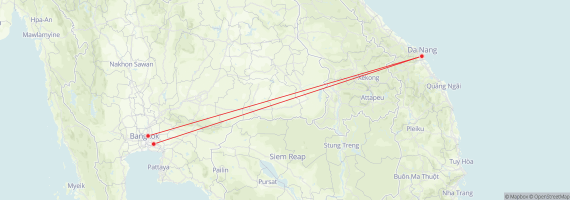 The travel distance between Bangkok and Da Nang is 1,155 km. The best options to travel from Bangkok to Da Nang: taking a flight.