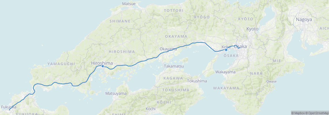 How long does it take to get from Hiroshima to Kobe?