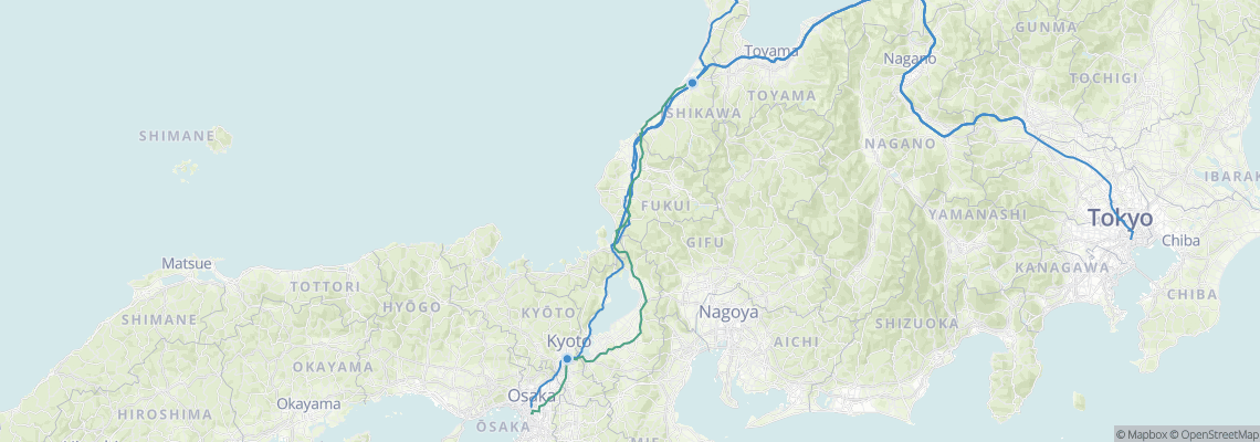 Train routes from Kyoto (Kyoto) to Kanazawa (Kanazawa Station)