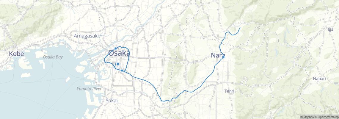 Train routes from Nara (Nara) to Osaka (Namba Station)