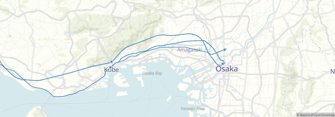 - - Express trains runs between Osaka and Kobe.