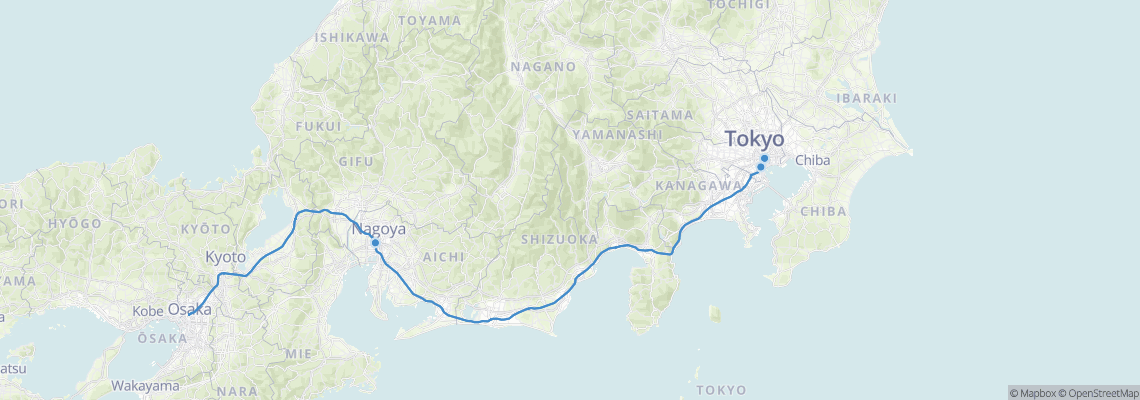 JR operates the Tokaido Shinkansen high-speed train between Tokyo and Osaka stopping in Nagoya.