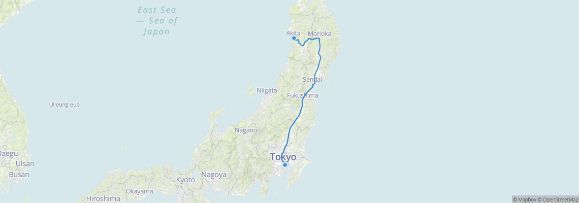 Train routes from Akita (Akita) to Tokyo (Tokyo Station)