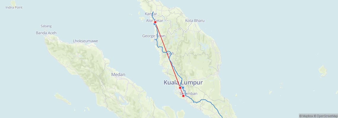 How long does it take to get from Alor Setar to Kuala Lumpur?