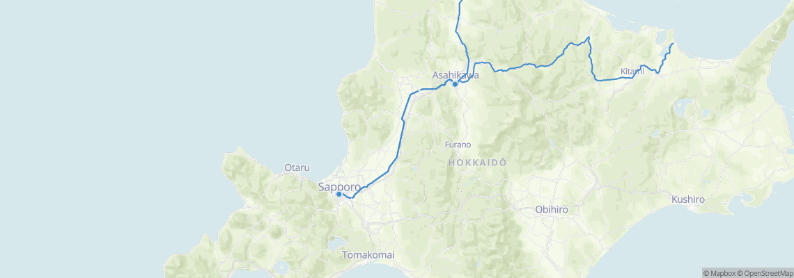 - - The Limited Express Okhotsk runs between Abashiri and Sapporo stopping in Asahikawa.