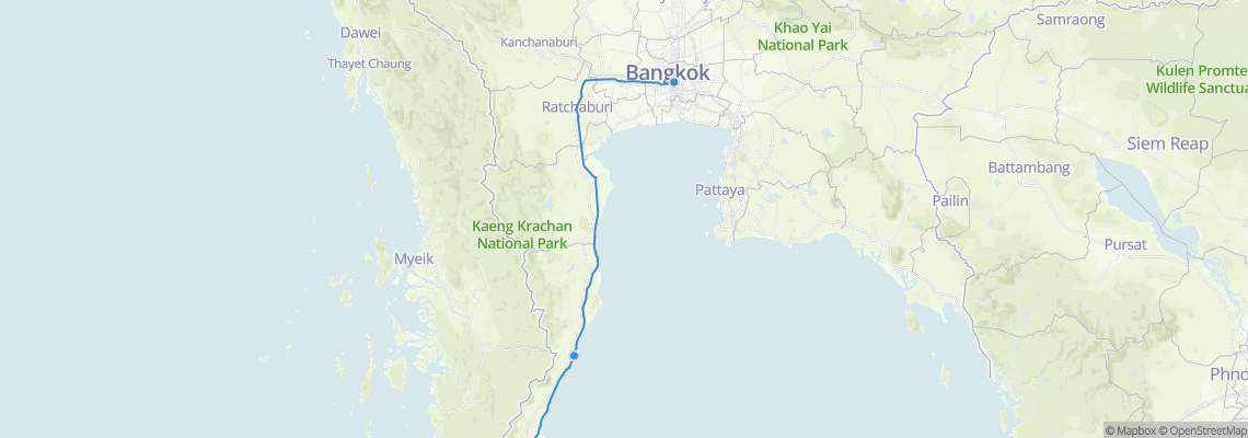 The travel distance between Bangkok and Prachuap Khiri Khan is 293 km. The best option to travel from Bangkok to Prachuap Khiri Khan is taking a train.