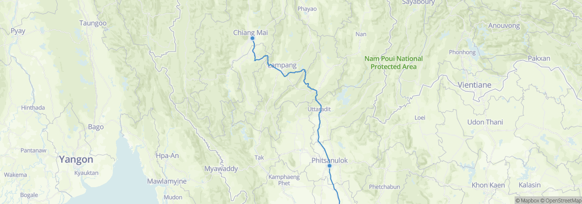 How far is Chiang Mai from Phitsanulok?