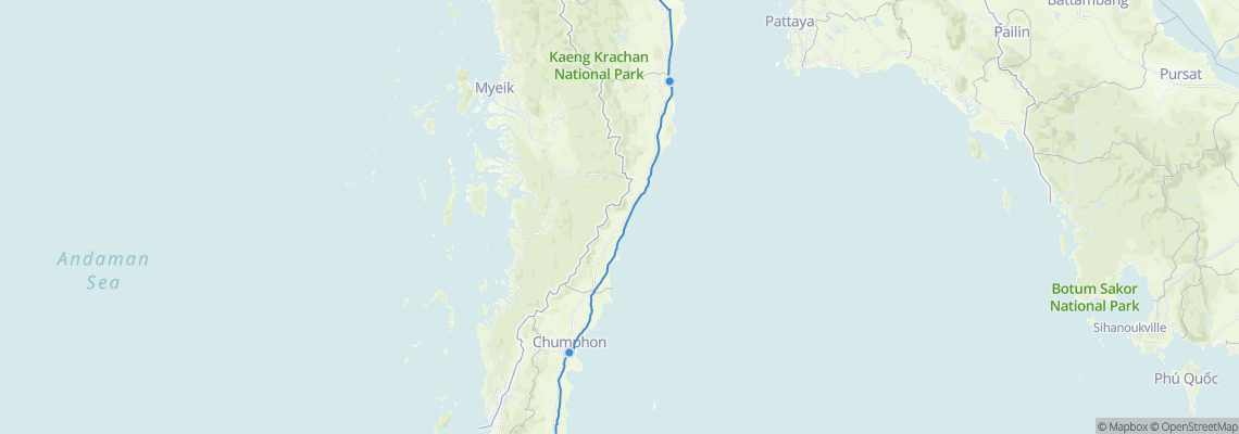 The travel distance between Hua Hin and Chumphon is 269 km. The best option to travel from Hua Hin to Chumphon is taking a train.