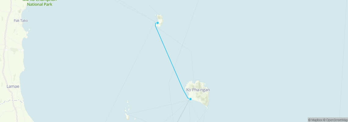 The travel distance between Koh Phangan to Koh Tao is 50 km. The best option to travel from Koh Phangan to Koh Tao is taking a ferry.