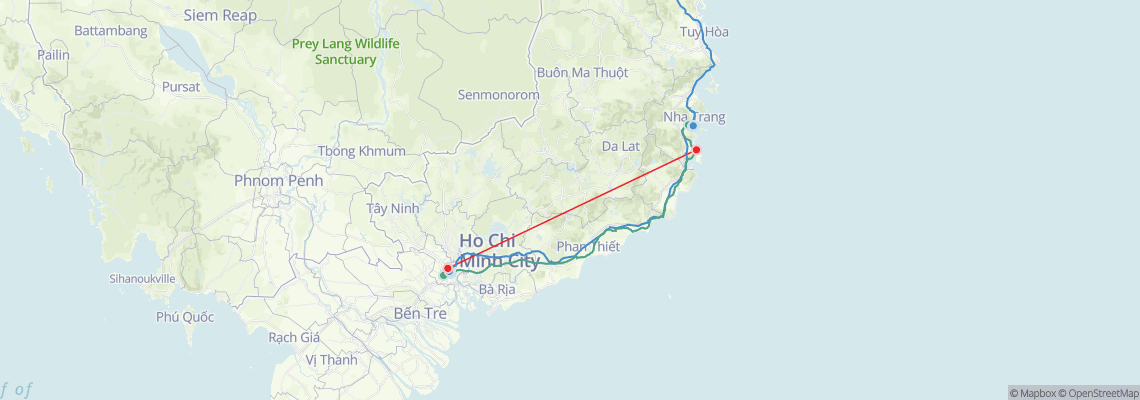 The travel distance between Nha Trang and Ho Chi Minh is 434 km. There are three options to travel from Nha Trang to Ho Chi Minh: taking a flight, a train or a bus.