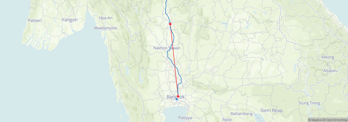 Train routes from Phitsanulok to Bangkok