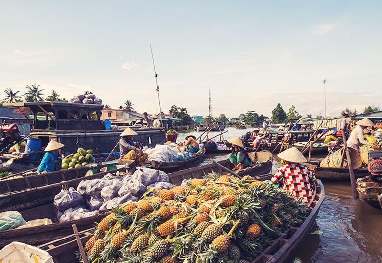 Saliendo desde Ho Chi Minh, los viajeros pueden llegar a My Tho, Ben Tre, Vinh Long y Sa Dec para explorar los nueve afluentes del río Mekong. Can Tho es una parada imprescindible para conocer los mercados flotantes y visitar los jardines de frutas tropicales. Cerca de la frontera, Chau Doc alberga el místico bosque de Tra Su, que parece sacado de un cuento de hadas.