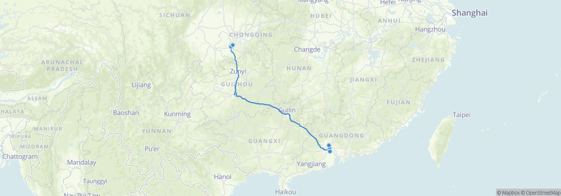 Rutas de tren de Guangzhou (South) a Chongqing (Chongqing West Railway Station)