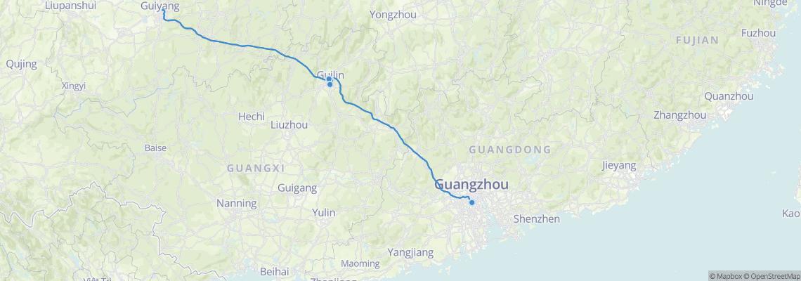 Itinéraires de train de Guangzhou (South) à Guilin (Guilin West Railway Station)