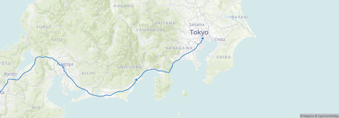 Itinéraires de train de Tokyo (Tokyo) à Shizuoka (Shizuoka Station)