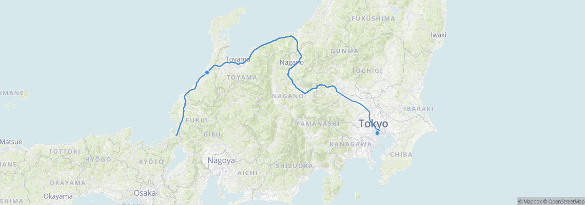 เส้นทางรถไฟ เดินทางจาก โตเกียว (โตเกียว) ไป คานาซาวะ (สถานีรถไฟคานาซาวะ)