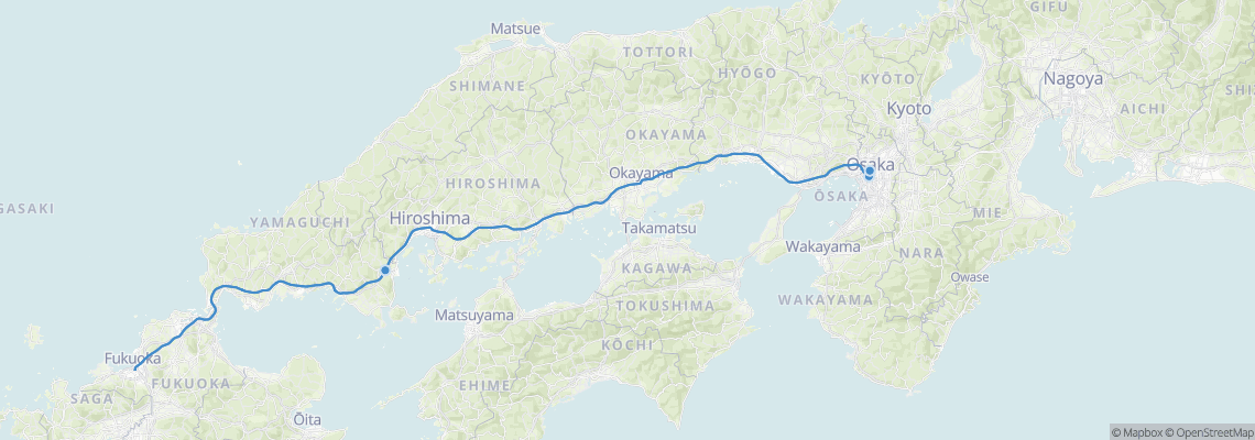 Chuyến tàu từ Osaka (Shin-Osaka) đến Iwakuni (Ga Shin-Iwakuni)